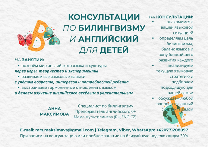 Добрый день! Ищу девушку/женщину, хорошо владеющей чешским и пониманием как обучать ребенка 2, 5-3года.