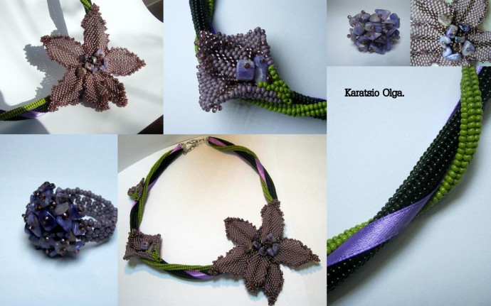 Колье Тропиканка с чароитом.Сделала к нему колечко.