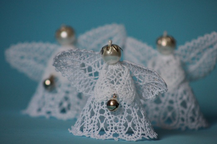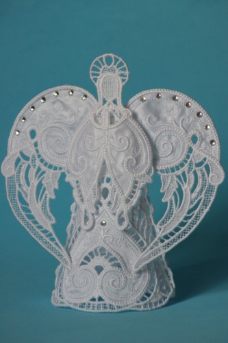 тоже машинная вышивка, большой ангел как макушка на елку