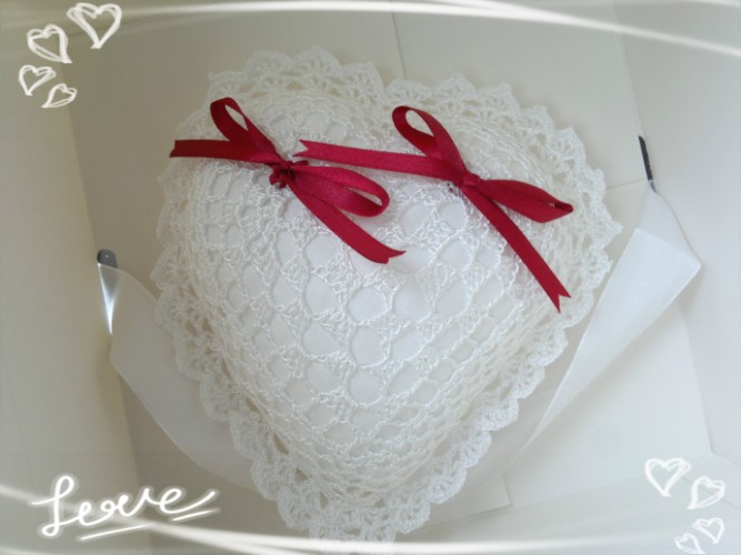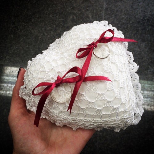 Начну первая ))) подушечка для колец подруге на свадьбу )))