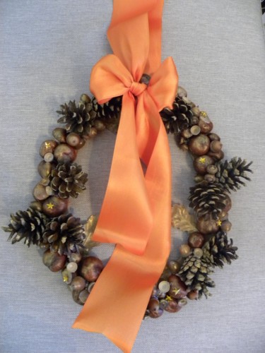 Какой классный венок! А как Вы между собой соединили каштаны и шишки? Проволокой?