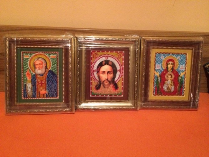 Да, она в Москве купила несколько наборов. Сейчас их довешивает и хочет заказать новые, вышить шесть икон святых, с именами наших родных. Должно красиво прлучится, они более детальные, чем эти
