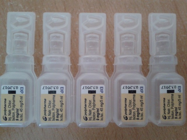 Физиологический раствор для ингаляций.Покупали в Польше.Я слышала, что нужно заливать физраствор. Завтра сама пойду его покупать для тех же целей.