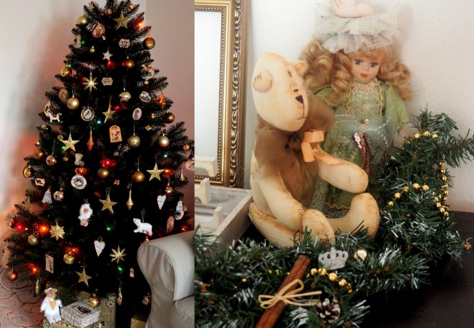 Добавили немного шариков, звездочек и пару игрушек (одна даже настоящая чердачная от прабабушки)Вот как смотрелось