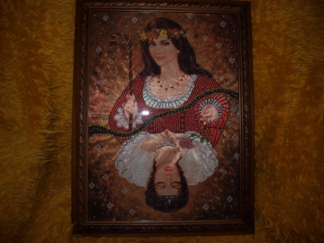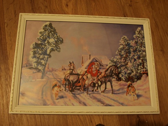 Я сама та еще «рукодельница»)) поэтому опять с маминой работой. Очень она втянулась в вышивание бисером. Правда работа не совсем закончена — по углам не хватило бисера в наборе(( Поэтому пока нельзя оформить в рамку. Но в целом практически готова :)