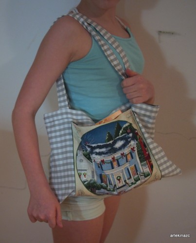 Эх..Ребенок пошел весь в меня! Готовить подарок накануне ночью — это нормально!! Вот так и Саша. «Мама, я решила подарить подруге в школе сшитую сумку. Сама сошью. Дарить буду завтра!». Угу, и все это говорится после обеда, в воскресенье!! Магазины- закрыты, времени- мало! Домашние запасы — еще меньше! В общем, в 22:15 прозвучало -«Усе, шеф.Готово!» и на свет появилось вот такое чудо.