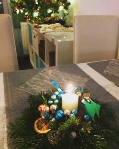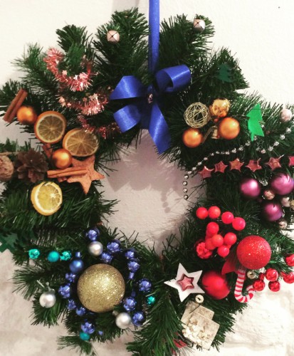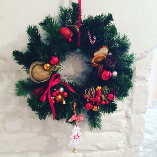 Основная идея, концепт который в этом году хотелось вложить в венок — натуральность. Поэтому- яблоки, корица, апельсин, дерево — все пошло в ход.
