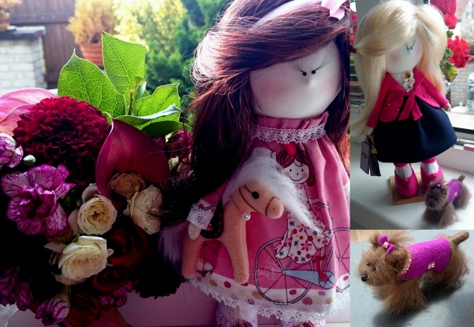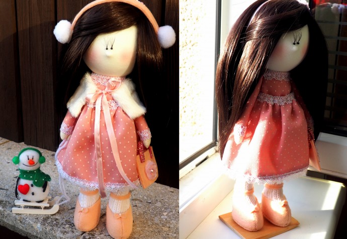 Портретные куколки и семьиДевочка со своим любимчиком (сшит по образу любимой игрушки) Меховое болеро и наушники снимаются