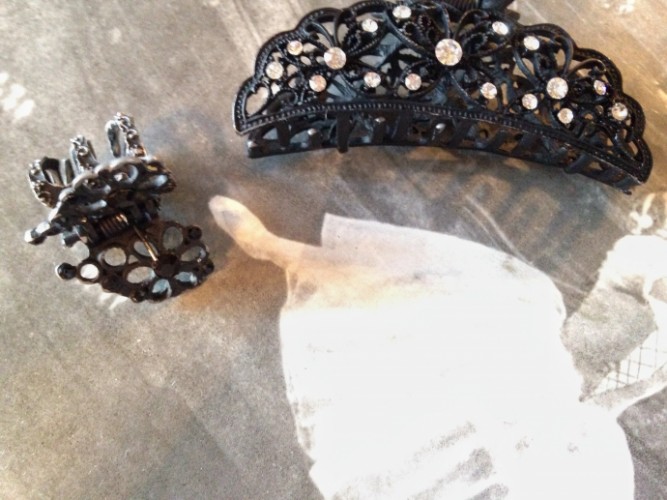 Две добротные красивые заколки для волос, большая и маленькая, из одной серии: обе выполнены в металле с ненавязчивым мотивами бабочек, цветов и сердец, инкрустированы стразами (большая белыми, меньшая — черными). Держат прекрасно от густых до тонких волос. Вариант: маме — большая, дочке — маленькая) Продаю их обе вместе за 100 крон, при желании в придачу бонусом отдам кошелёчек-косметичку на нижнем фото и несколько обычных резиночек разных цветов.