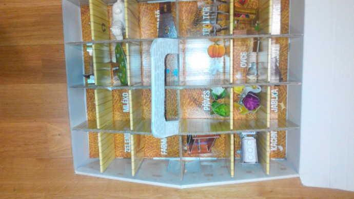 Домик-ферма сделан в стиле игрушек Монтессори. Вариантов, как в него плтграть, много разных. Крыша открывается и внутри всякие фермерские животные, овощи, предметы и т.д. Сын наш долго игрался, но уже кажется наигрался, поэтому отдаем.