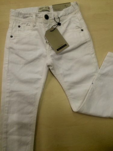 12. джинсы зауженные, белые. Размер 110. Цена 210 крон