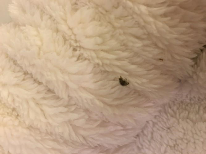 Если дома есть живая елка, это может быть кто угодно и даже клещ.У меня собака с елочки подцепила клеща, оказывается это частое явление...
