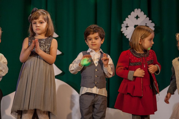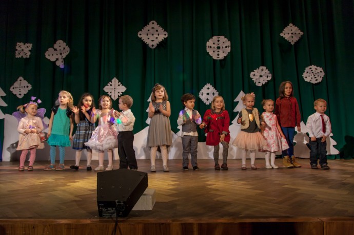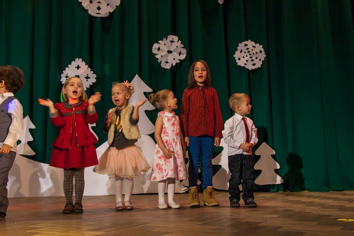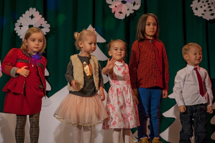 На фото наши маленькие артисты выступают на новогоднем концерте :)
