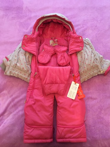 Размер 80 см. Тёплый ( холлофайбер). Костюм можно сделать конвертом. С рукавичками.