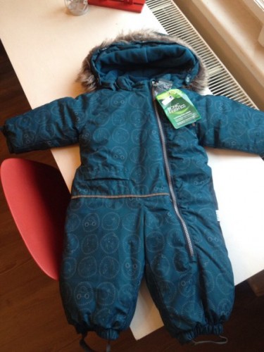 Добрый день, к сожалению не пригодился зимний комбинезон — малыш вырос и никого не спросил:) размер 68, по факту на рост 68-70 см, возраст 6-8-10 месяцев — в зависимости от габаритов. Комбинезон привезли из России, очень качественный, непромокаемый, мех на капюшоне отстегивается, резинки для ботиночек, на задней части усиленная вставка.