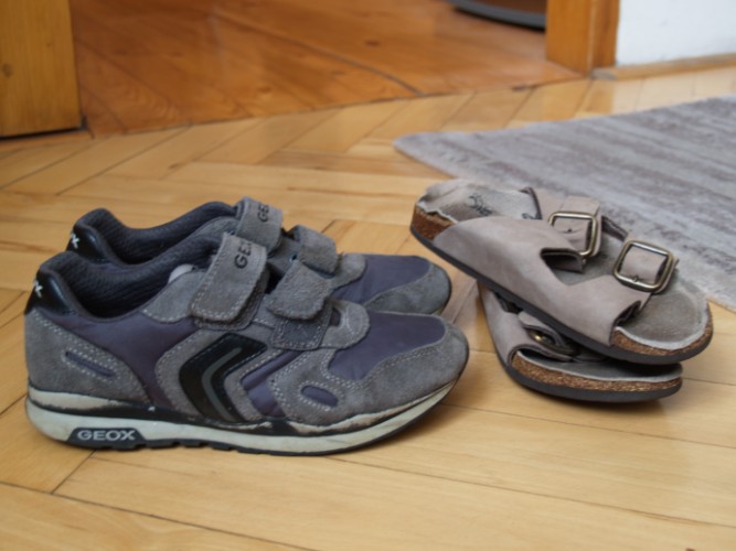 Кроссовки Adidas , ношены толко на физкультуру, в отличном состоянии, разм.34.Цена 300 крон.К ним впридачу 2 пары Geox разм.35 и тапки MarksSpencer разм.34
