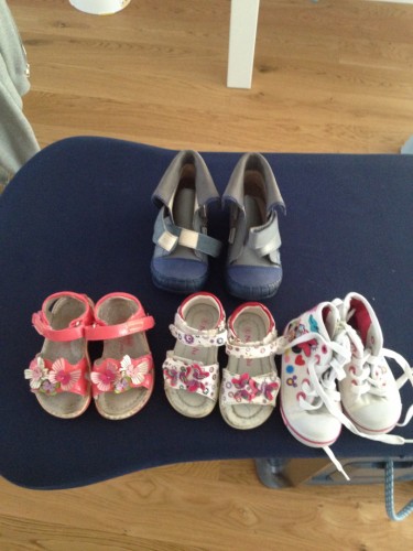 сандалики 20-21 и кеды 20 размер, синие ботинки не носили нога не пролезла, нижкий пере, пытались чуть распороть не помогло)