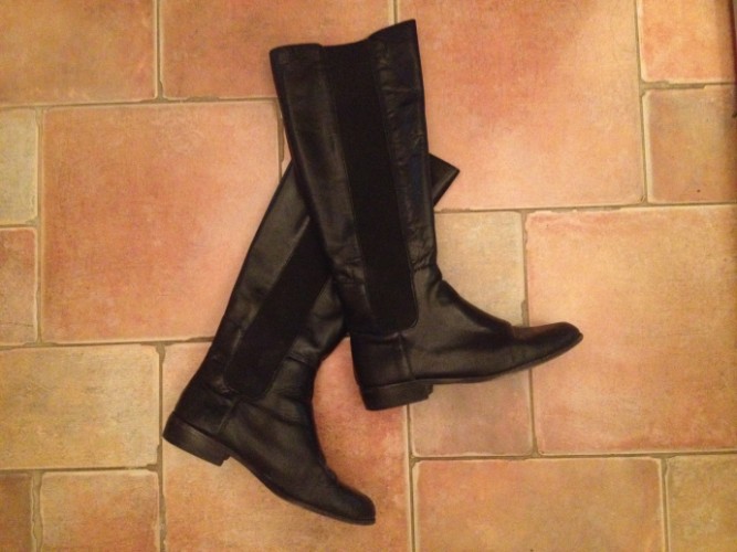 Размер 38, до колена, резиновая вставка на голенище. В хорошем состоянии, носила всего месяц.