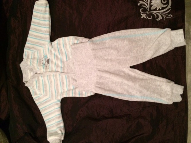 4) Продам костюмчик велюровый, размер 68. Б/у, в идеальном состоянии, без каких-либо помарок, 150 крон.
