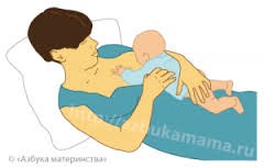Чтобы малыш не давился и не захлебывался, кормите в горизонтальной позе.