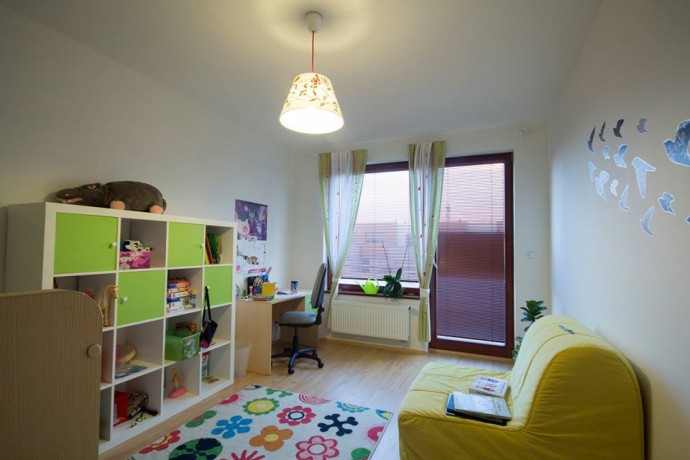 Детская комната: кровать + стол — 5000 крон. Стелаж 1600 крон. Раскладывающиеся кресло 2500 крон. Ковер 133x160 — 400 крон. Люстра 350 крон. Шторы 450 крон. Гардины 200 крон.