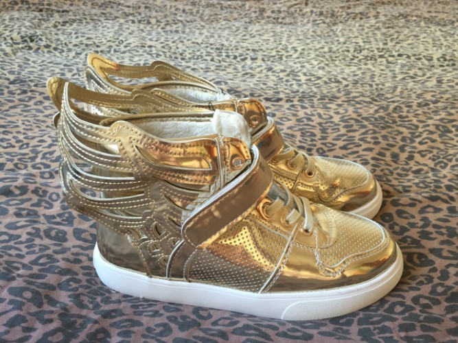 Продам кроссовки с крыльями. Новые. Золотые. Оказались нам большие.