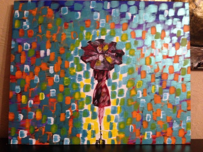 горный пейзаж-холст на подрамнике 40;50 ,масло-4500 крон.зимний пейзаж-холст 40;50 ,акрил-2300 крон.девушка под дождем(абстракция)-40;50 ,акрил-2000.