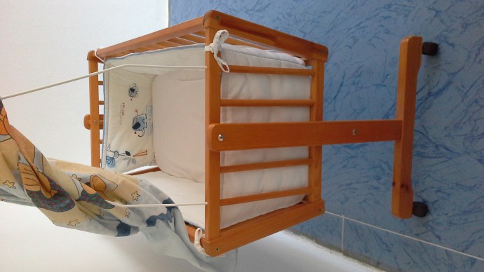 В использовании очень удобна, для укачивания малышей.причина продажи: мы выросли с нее , уже пора в кроватку...бортики у нас от знакомых , а небеса новые , немецкой фирмы