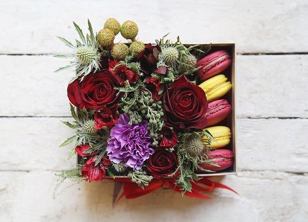 Марина очень талантливый флорист! мы вместе сотрудничаем уже несколько месяцев в проекте — Элегантные подарки — коробочки макаронс с цветами, и все наши клиенты очень довольны, многие обращаются повторно! муж будет заказывать букет на выписку с роддома тоже у нее)) обращайтесь!!