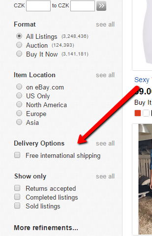 Когда ищете вещь, слева параметры. Нужно найти Delivery Options и поставить птичку у Free International shipping