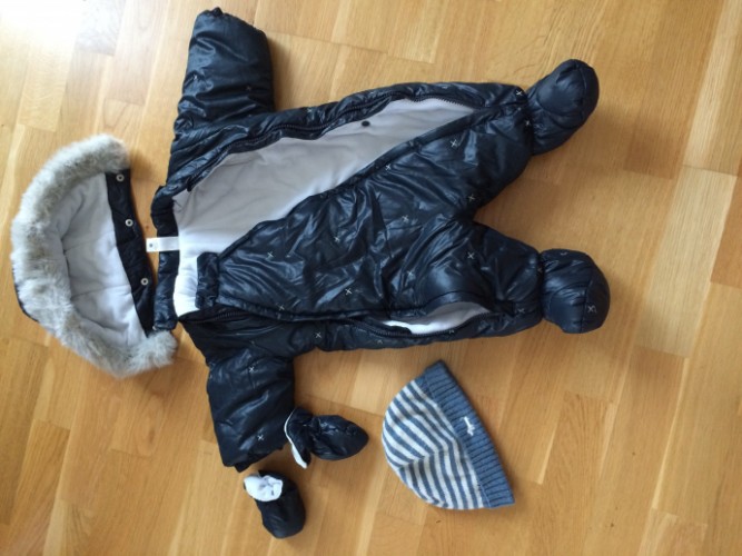Зимний теплый комбез, размер 68. Варежки и капюшон отстегиваются, в комплекте синий флисовый шарфик — 250кс.состояние нового