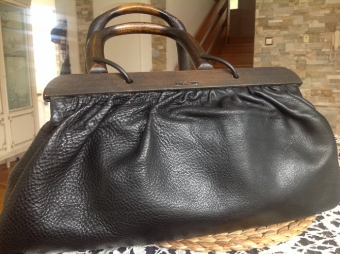 GUCCI оригинал, б/у, Черного цвета, кожа, ручки из дерева. Размеры 43х 23. Цена 1800 крон