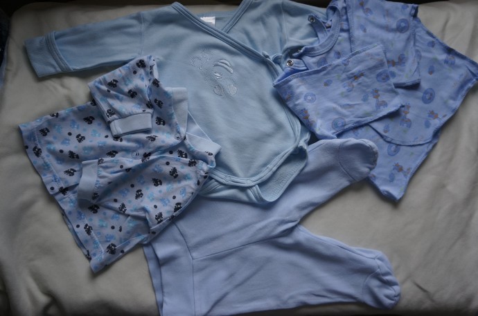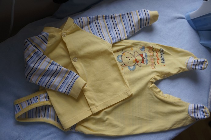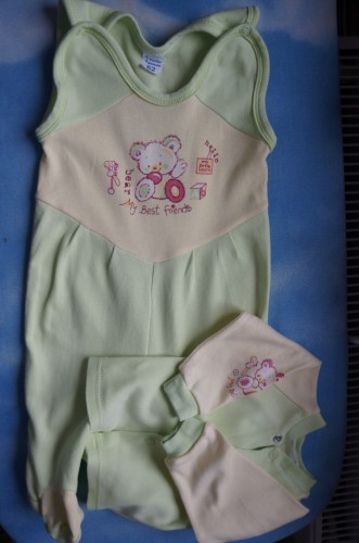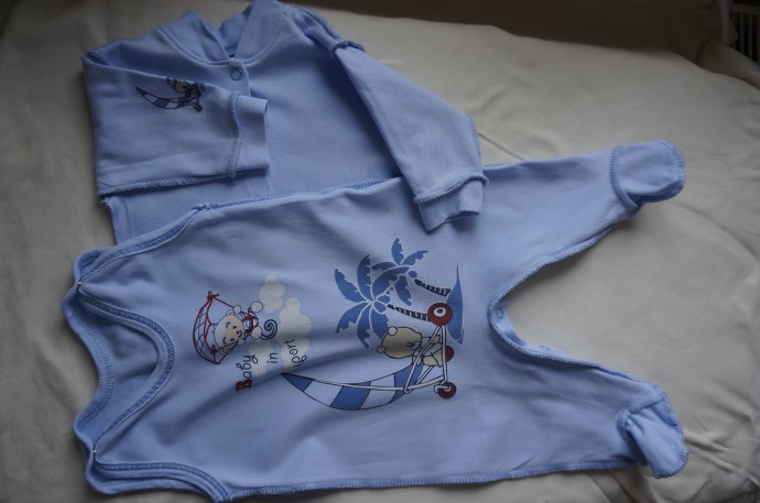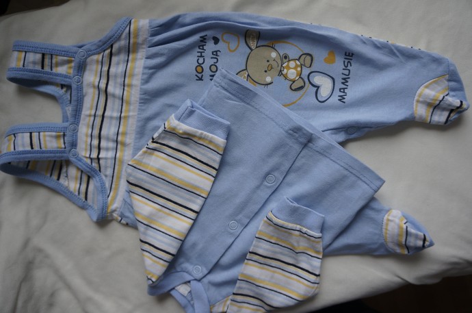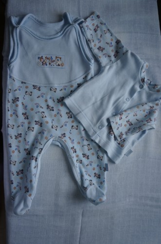 4.Костюмчик голубой со швами наружу, очень мягкий и приятный — 100 крон. К нему отдам бесплатно еще 4 костюмчика.