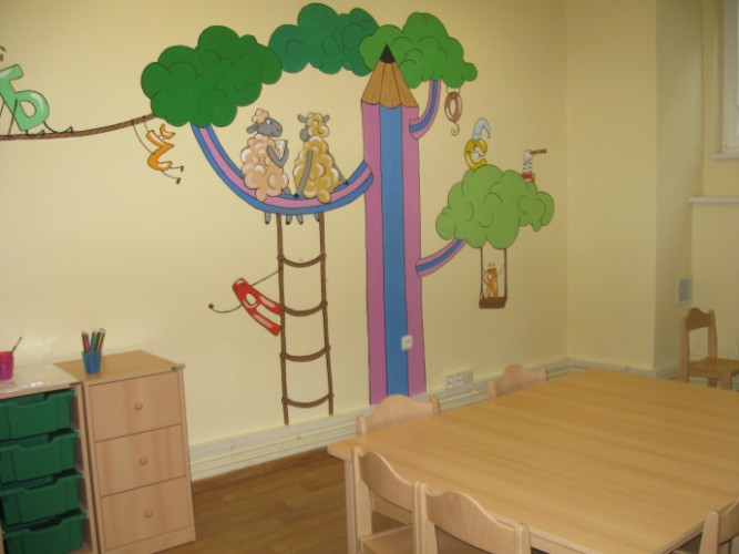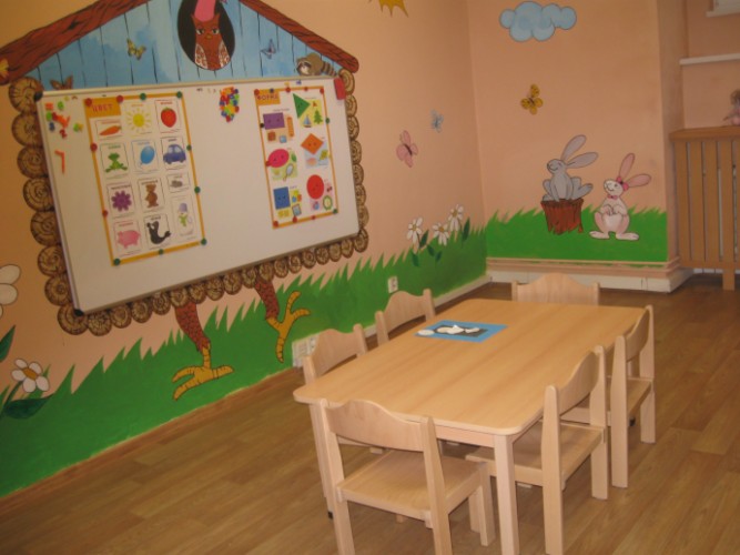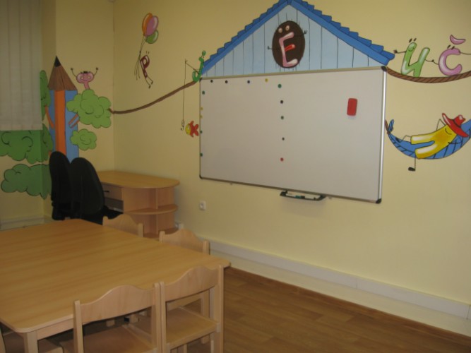Мы предлагаем 2 комфортных класса, оборудованных для обучения детей, в возрасте от 1, 5 до 9 лет (столы, стулья, доска), а также игровую комнату с резиновым покрытием и комнату для обучения взрослых.