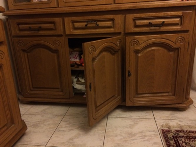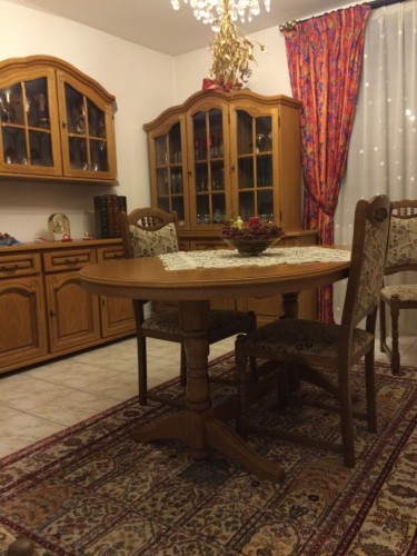 Здравствуйте, в связи с переездом продаю мебель. Столовая в очень хорошем состоянии, только на комоде сломан замочек (см на фото), массив сосны. Состоит из раскладного стола 15998x75 (не разложенный) с 6 стульями, 4x комода (138x40x80), 2x серванта (135x32x112, 5) 1x стеклянная полка на стену (145x36x77, 5). В первую очередь продаем целиком, потом по отдельности. Вывоз Praha 6
