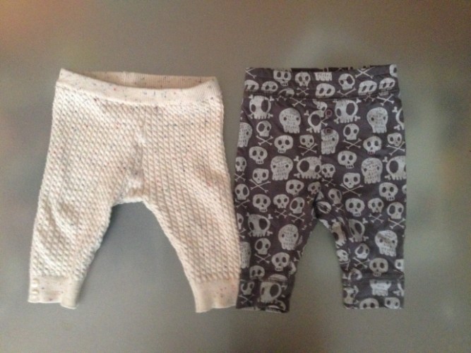 3. Штаны Mango (белые вязаные) и La Redoute (с черепами)Размер белых 62, с черепами 1-3М