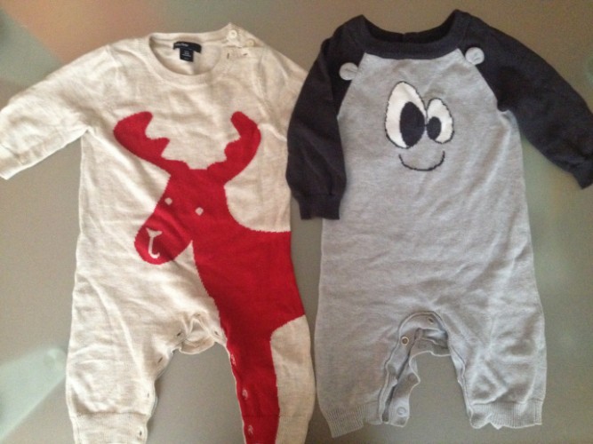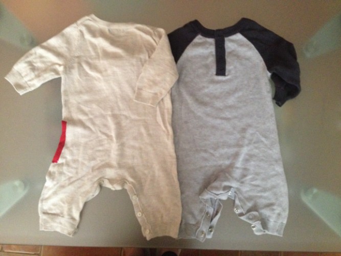 4. Вязаные трикотажные комбинезончики La Redoute (синий) и Baby Gap