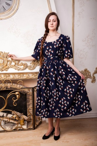 Проблем с посадкой платьев подобного фасона обычно не бывает. В своём производстве мы ориентируемся на советские модели платьев, когда женщины шили одежду, предполагая, что будут носить её долго, а фигура с течением времени подвержена изменениям. Чтобы было удобно, шились фасоны «Свободного» кроя, как на данных фотографиях.