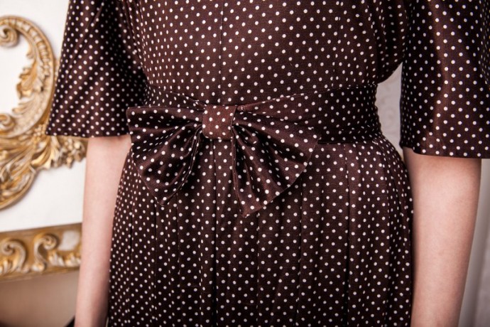 Оригинальный пояс со съёмным бантиком, сзади застёгивается на пуговички, его размер отрегулирую под ваш объём талии.