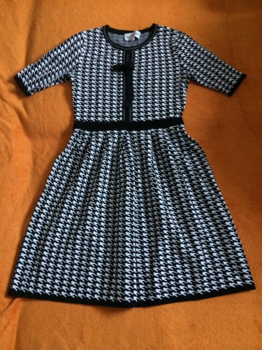 1) Платье, длина примерно до колена (если на рост 160-165). В идеальном состоянии, одевалось 1-2 раза. Цена 320 крон.