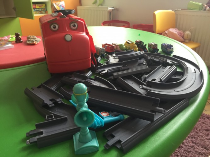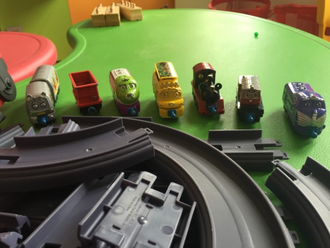 Они стоят и передвигаются внутри рельсов. Не заводные