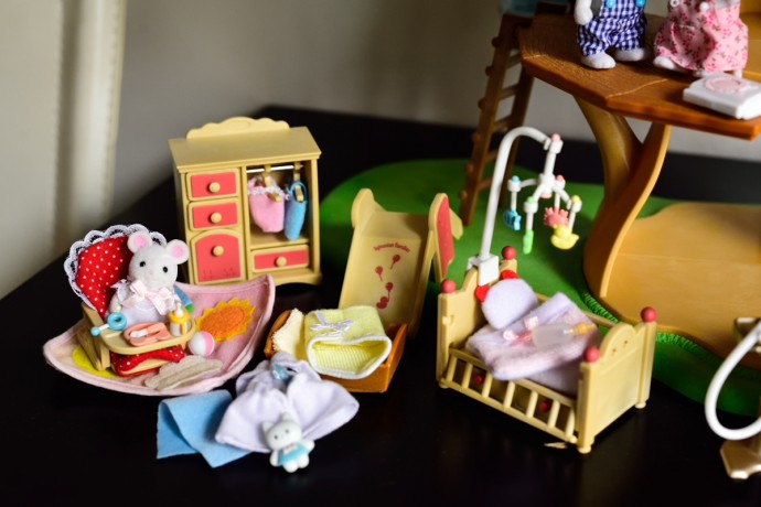 Домик 40 см в высоту, мыши 8 см, кроватка 8 см для малыша)