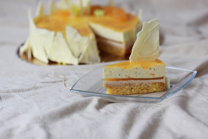 На фото Торт из медового орехового бисквита, карамельно-медового-орехового мусса, апельсинового желе и освежающего мятного мусса. Мои торты не пересахареные.