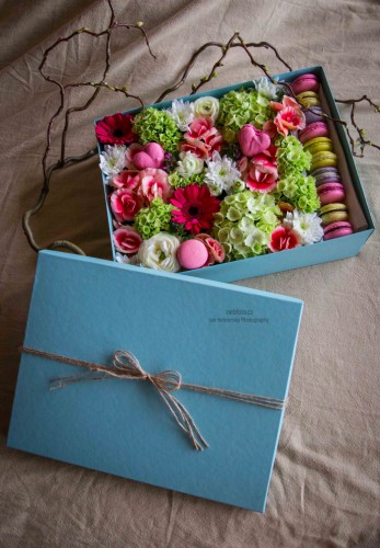 4) не забываем о оригинальных и элегантных подарках — коробочках с цветами и макаронс ( заказ за 3 дня минимально)