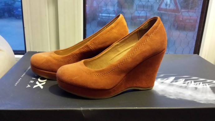 3. Новые туфли 5th Avenue, удобные и устойчивые, но не могу в них даже стоять после травмы голеностопа, 36 размер, замша снаружи, комбинация кожи и текстиля внутри, с коробкой — 500 крон