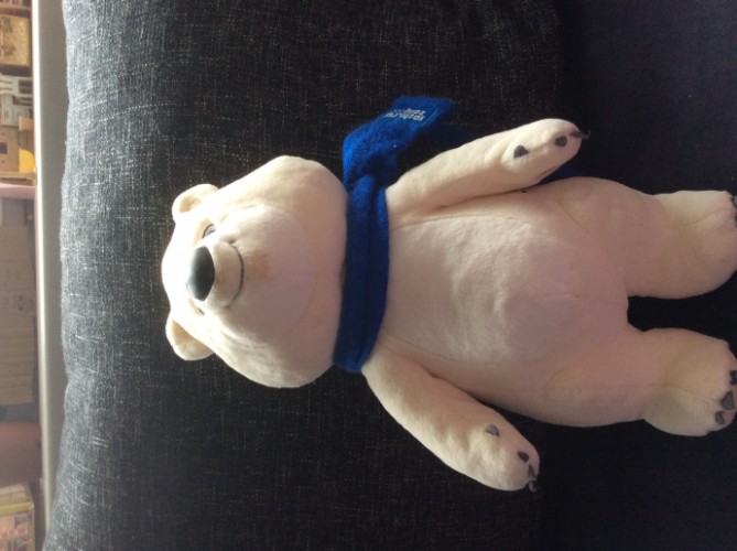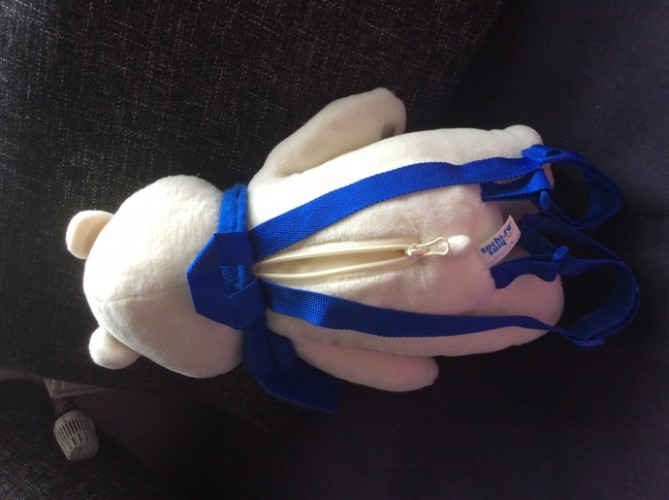 Продам джинсы на девочку скини размер 134/140 но реально 128 по 150 крон, и олимпийского медвежонка — рюкзак за 200 крон, кофточка за 100 крон