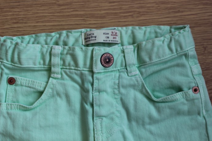 2. Шортики Zara BabyBoy, без этикеток, но так ни разу их не одели. 9-12 мес. рост 80 см. Цвет в реальности более насыщенный, мятный. Можно носить с отворотиком и без. 100 крон