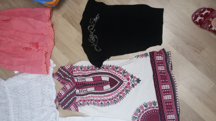 Платье подойдет кормящим мамам, футба слегка просвечивающая motivi микроразмера, около 32, сфоткана спиной — видно надпись стразами. РЕЗЕРВ НА ПЛАТЬЕ И ПЛЯЖНЫЕ ХЛАМИДЫ. Футбыч свободен.