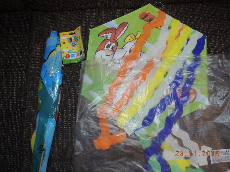 б) Два воздушных змея. Основы деревянные. У того, что справа, нет бечевки и кольца (так продавался)