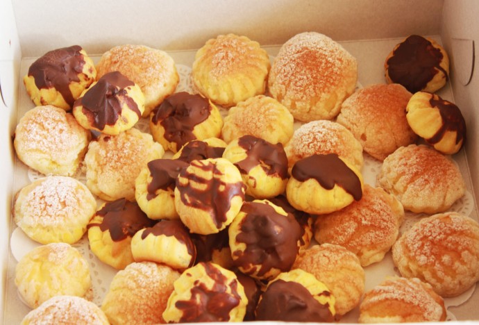 а у нас в наличии последняя упаковка профитролей (пеклись вчера) с нежным ванильным кремом и домашним мермеладом, 1 упаковка картошки микс, 3 шоколадных колбаски и 2 упаковки макаронс микс!